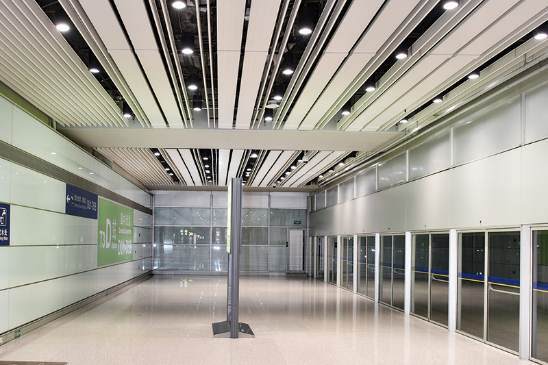 吊顶辐射板采用铜管机械涨接铝合金型材金属辐射板作为辐射源,以热水为介质,辐射板串联带状布置,吊顶安装。