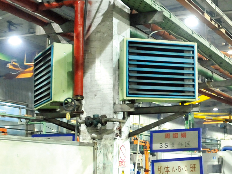 2007年,康平空调为东风朝阳柴油机有限公司厂房车间配套蒸汽型侧吹暖风机。