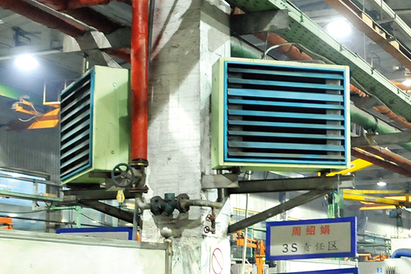 戴姆勒-奔驰北京工厂车间应用热水型侧吹暖风机。