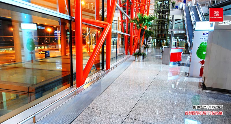吊顶辐射板采用铜管机械涨接铝合金型材金属辐射板作为辐射源,以热水为介质,辐射板串联带状布置,吊顶安装。
