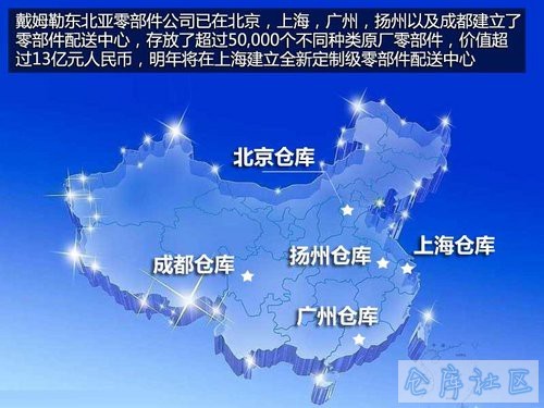 作为总部位于德国盖默斯海姆的戴姆勒全球物流配送中心的核心分支,戴姆勒东北亚零部件贸易服务有限公司在今年已成立五周年。自2008年公司成立至今,已在北京,上海,广州,扬州以及成都建立了零部件配送中心,全国五家零部件配送中心累计面积大于120,000平方米,拥有雇员超过400名,存放了超过50,000个不同种类原厂零部件,价值超过13亿元人民币。
