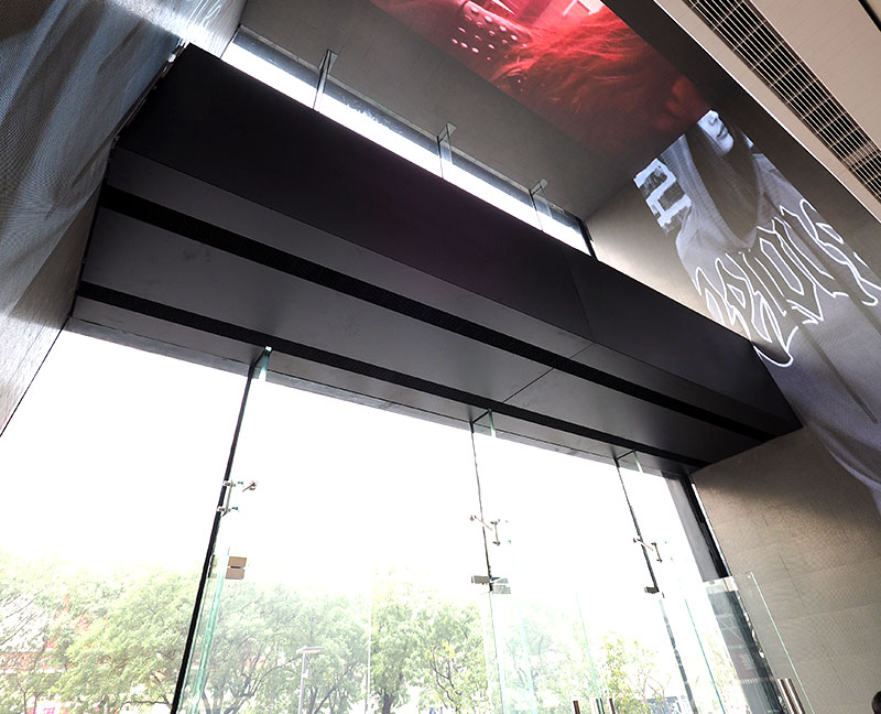 选用产品:顶吹电热风幕,顶吹空气幕,顶吹冷暖风幕,