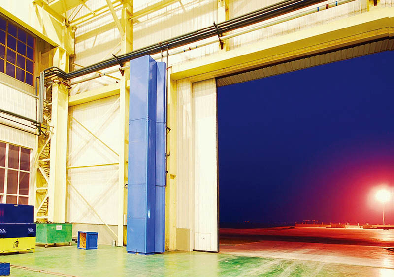 大连重型公司厂房门高20米,门宽30米,采用康平组合式节能型大门侧吹热风幕,还采用了康平侧吹暖风机。