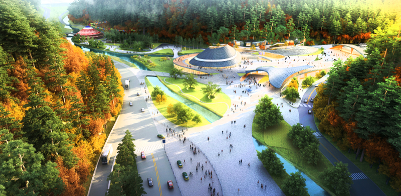 九寨沟景区沟口立体式游客服务设施建设项目由清华大学建筑设计研究院院长兼总建筑师庄惟敏大师担任总设计。项目立意与九寨沟自然山水形态呼应,建筑内外充分体现藏文化内涵,造型舒展流畅,融合传统文化与现代风格,是富有深厚文化底蕴、集各项管理服务功能于一体的“环境建筑”,建成后将极大改善提升景区沟口的交通功能和服务功能。届时,一座占地30000多平米,汇游客集散、人防应急避难、文化科普展示、国际学术交流、景区智慧管理和景观化、功能化等于一体的建筑群,将再次展示九寨沟景区面向未来的独特魅力。