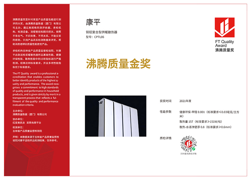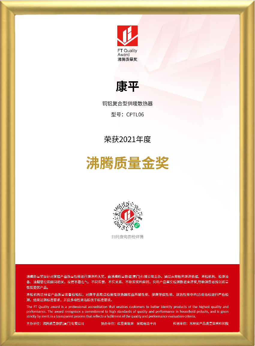 CONPIN康平 铜铝复合供暖散热器CPTL06 斩获2021年度沸腾质量金奖