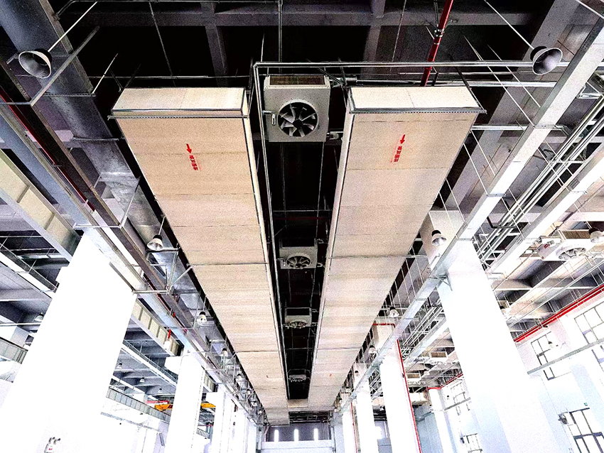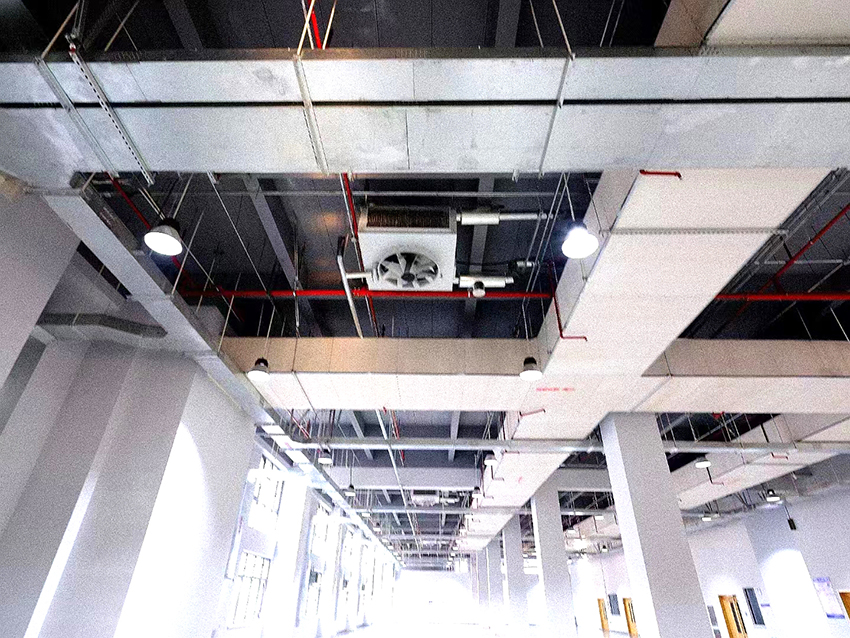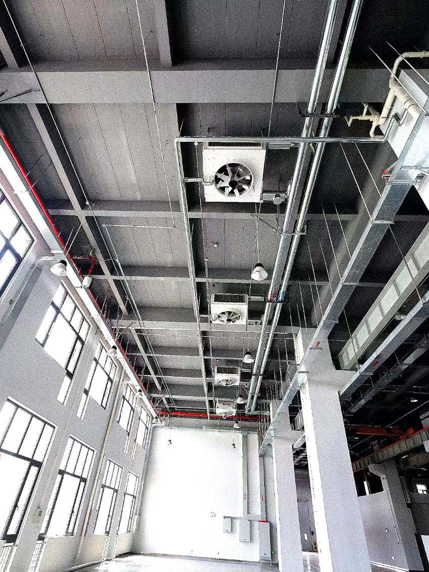 项目简介:系统配置康平和德国联合开发铝合金压铸风机,现场室外61分贝背景噪声,室内46分贝的超低运行噪声,改写康平高大空间空调机组新的静音运行记录……