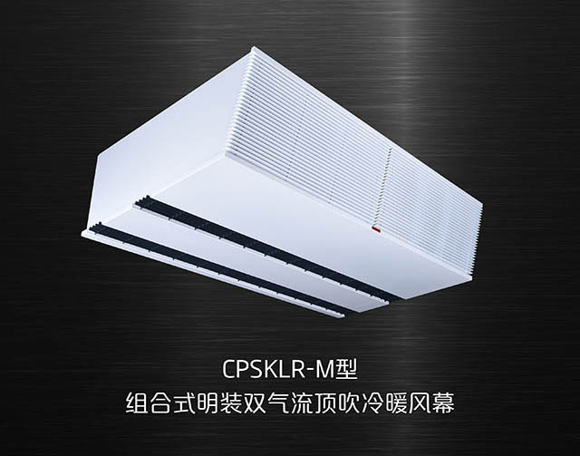 CPSKLR-M型明装双气流顶吹式冷暖风幕,采用空气幕和冷暖风幕组合,一次空气幕气流先拦截室外空气侵入,冷暖风幕气流二次拦截室外空气进入并补充室内冷量或热量,有效封堵建筑开口,阻隔室外强冷热空气侵入更有效,减少室内温度损失,节能高效降低冷热负荷,保持大空间建筑环境温度平衡。本产品具有体积小、风量大、噪声低、运行稳定、封门保温效果显著,空气幕和冷暖风幕可独立控制运行等优点。