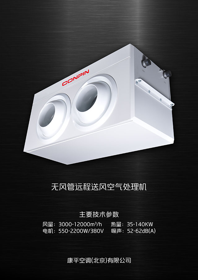 康平SYC型无风管远程送风空气处理机结合高大空间暖风机的特点,采用低噪声离心风机,可变风向球形风口,铜管铝片换热器,具有射程远、噪音低、无风管远距离送风、节能等特点,广泛应用于高大空间建筑领域。
